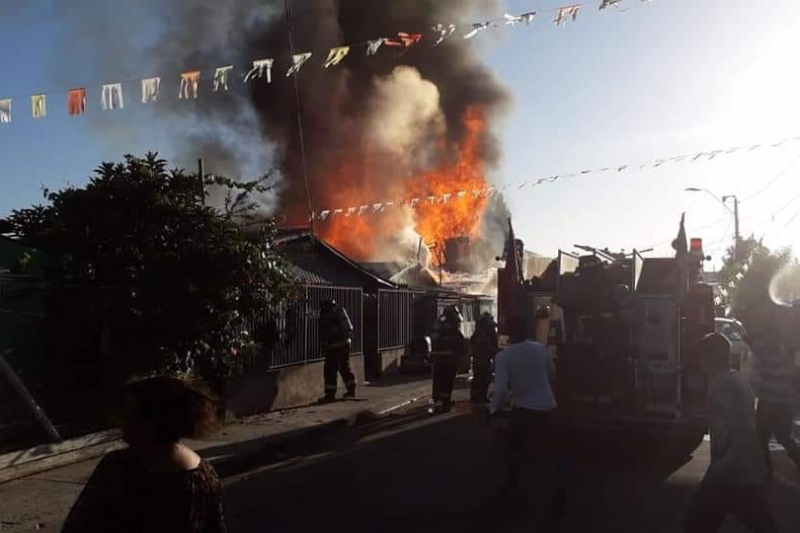 Eran las 08:00 horas del martes 01 de enero, cuando se declaró un violento incendio que se propagaba por las viviendas de calle Luis Cruz Martínez en la población Padre Demetrio Bravo.