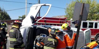 Espectacular volcamiento en calle Manso