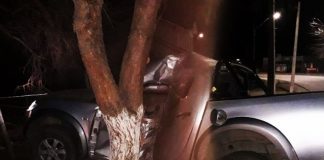 Grave permanece conductor que chocó contra árbol en San Pedro