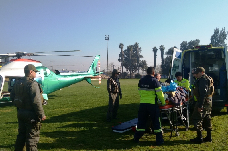Debido a la complejidad de su caso, fue trasladado en helicóptero hasta la Posta Central, donde hasta ayer permanecía en estado grave.