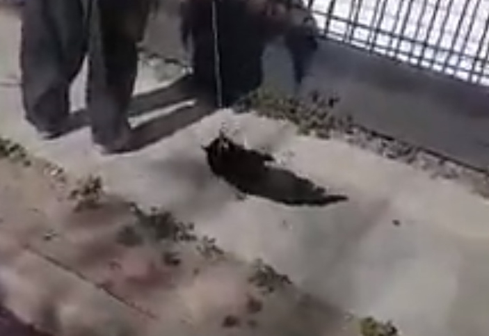Las imágenes son evidentes y el animal no podía mantenerse de pie. Aún así el hombre insistía en reanudar la marcha, arrastrándolo por el suelo, siendo increpado por el autor del video.