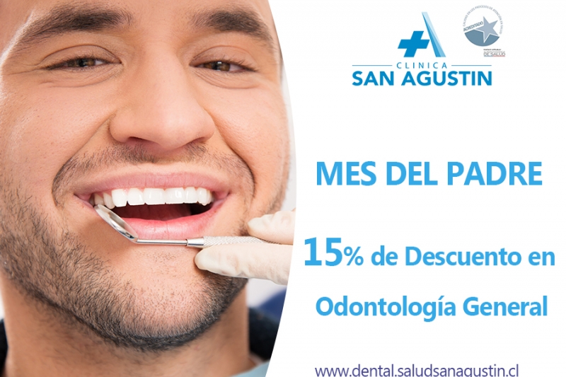 Quienes deseen disfrutar de este descuento o regalarle a su padre una sonrisa en su mes, pueden reservar su hora en el nuevo sitio web de la Unidad Dental www.dental.saludsanagustin.cl, llamar al 22 9281600 o agendarla directamente en el segundo piso de San Agustín 473.