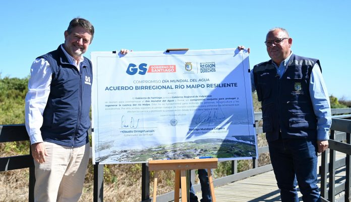 En el Santuario de la Naturaleza Humedal Río Maipo, en la desembocadura del Río Maipo, donde sus aguas se encuentran finalmente con el océano Pacífico, los Gobiernos Regionales de Santiago y Valparaíso suscribieron un acuerdo birregional histórico para la protección y regeneración integral de toda la cuenca del río.
