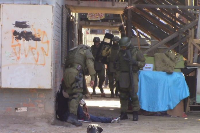 Por lo anterior se solicitó la presencia del GOPE de Carabineros, quienes lograron su detención. Además en la vivienda se encontró una gran cantidad de papelillos con drogas y dos armas de fogueo.