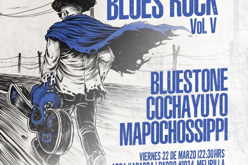 La ciudad de Melipilla se llenará de blues/rock la noche del viernes 22 de marzo próximo, cuando las bandas Cochayuyo, Mapochossippi y Bluestone se suban al escenario de Abra Kadabra, en la quinta versión de “La Ruta del Blues Rock”, que produce Cochayuyo y Vudú Medios.