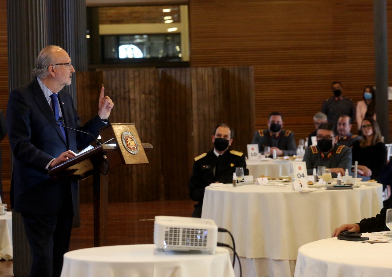 La apertura estuvo a cargo del Comandante en Jefe del Ejército, quien se refirió al “Aporte del Ejército a la Sociedad”, e inició su intervención con una reflexión sobre ¿Cuál es el valor de la paz para los chilenos hoy?, y ¿Existe una relación entre la paz y el desarrollo?, indicando que “como se sabe, el fin último de todo Estado es el bien común de su población. En otras palabras, el orden, la justicia, el bienestar y la paz de los chilenos”. Y precisamente planteó que para alcanzar este bien común, “el Estado de Chile requiere del desarrollo equilibrado de sus tres elementos constitutivos: su territorio, su soberanía y, lo más importante, su población, aspectos sobre los cuales el Ejército ha contribuido desde siempre”, sostuvo.